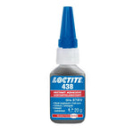 Loctite 438 ist ein Cyanacrylat Sekundenkleber mit Kautschukverstärkung für zähe, flexible und stoßfeste Verklebungen. Der Klebstoff (schwarze Flüssigkeit, Viskosität 200 mPa·s) eignet sich für Metalle, Kunststoffe, Elastomere sowie poröse Materialien wie Holz, Papier, Leder und Gewebe. Er kombiniert schnelles Aushärten mit hoher Feuchtigkeits- und Temperaturbeständigkeit bis +100 °C.